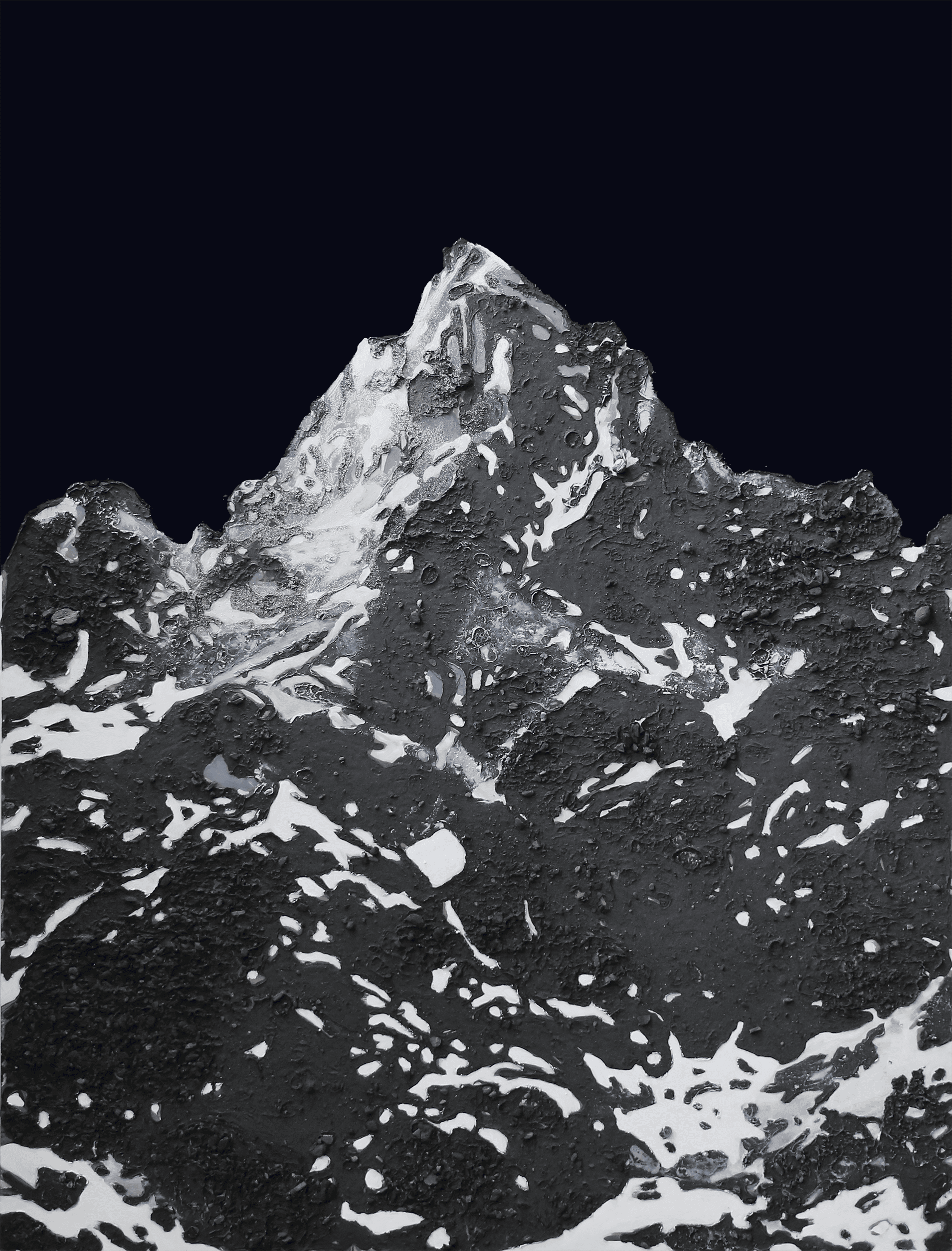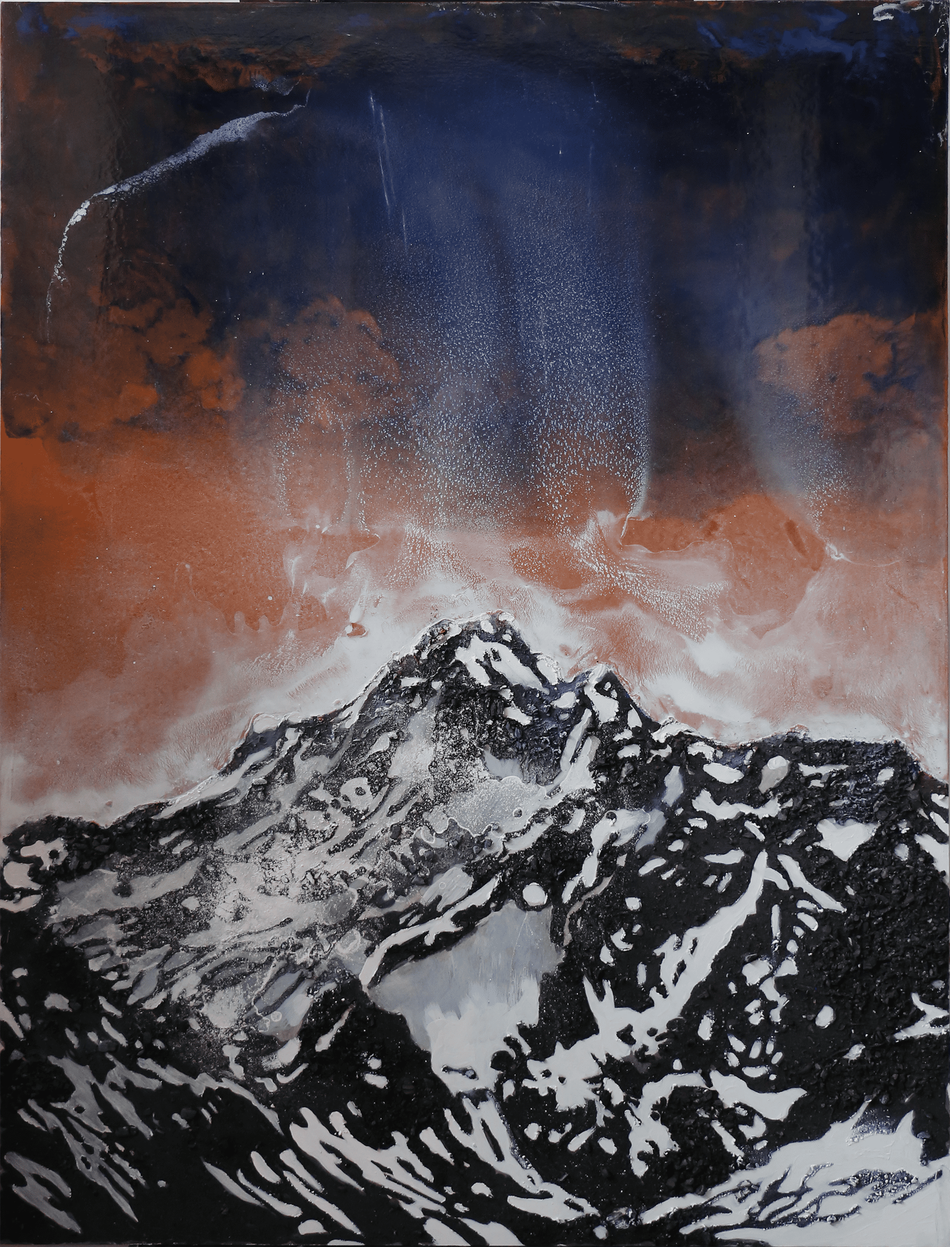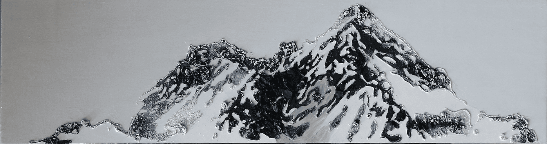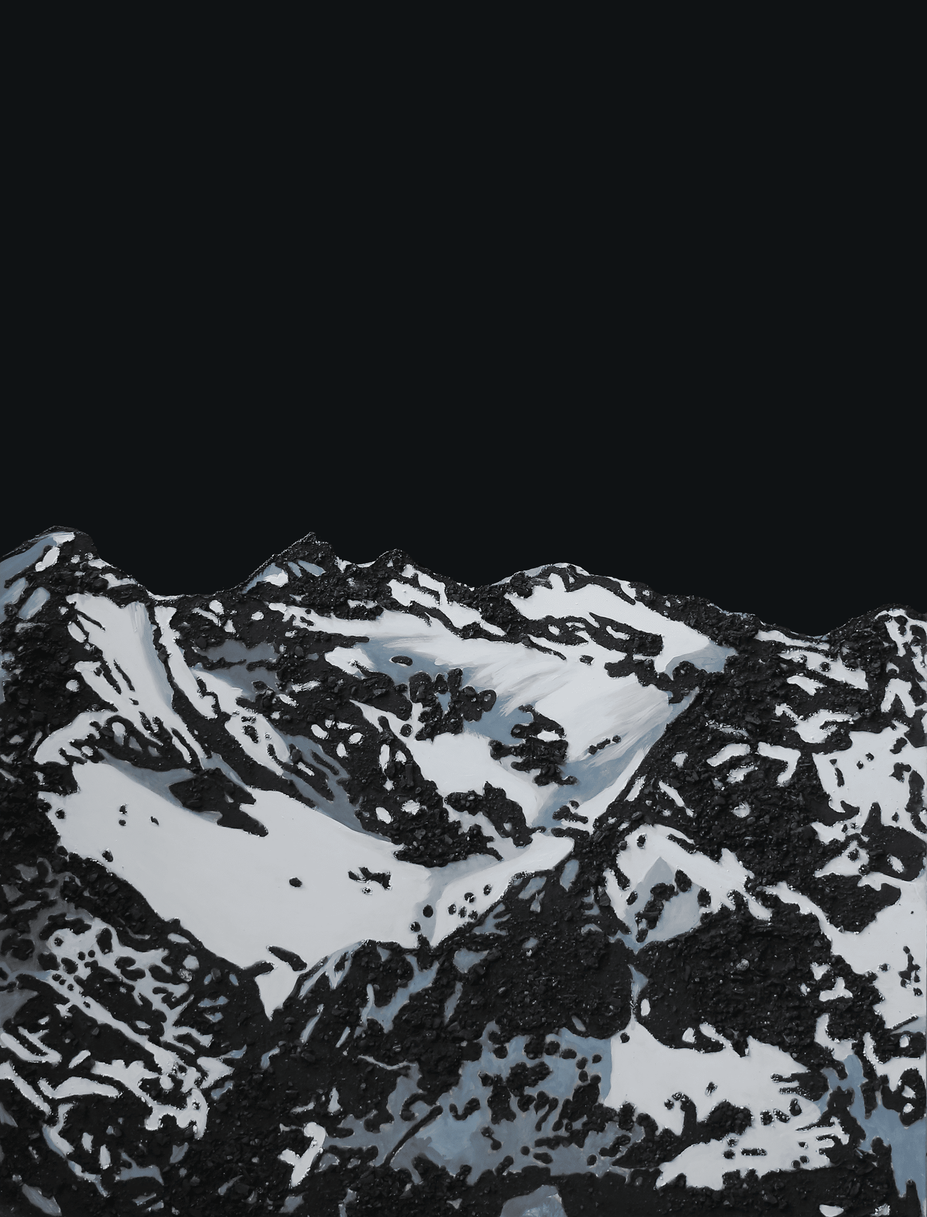 Dans ces nouvelles œuvres, l’artiste s’attache à révéler la présence presque invisible qui habite les reliefs. Les crêtes, les forêts et les rochers semblent émerger d’une matière picturale dense, comme si la montagne se formait lentement sous nos yeux. Le paysage apparaît alors dans un état de suspension, entre apparition et disparition, entre nuit et clarté.
