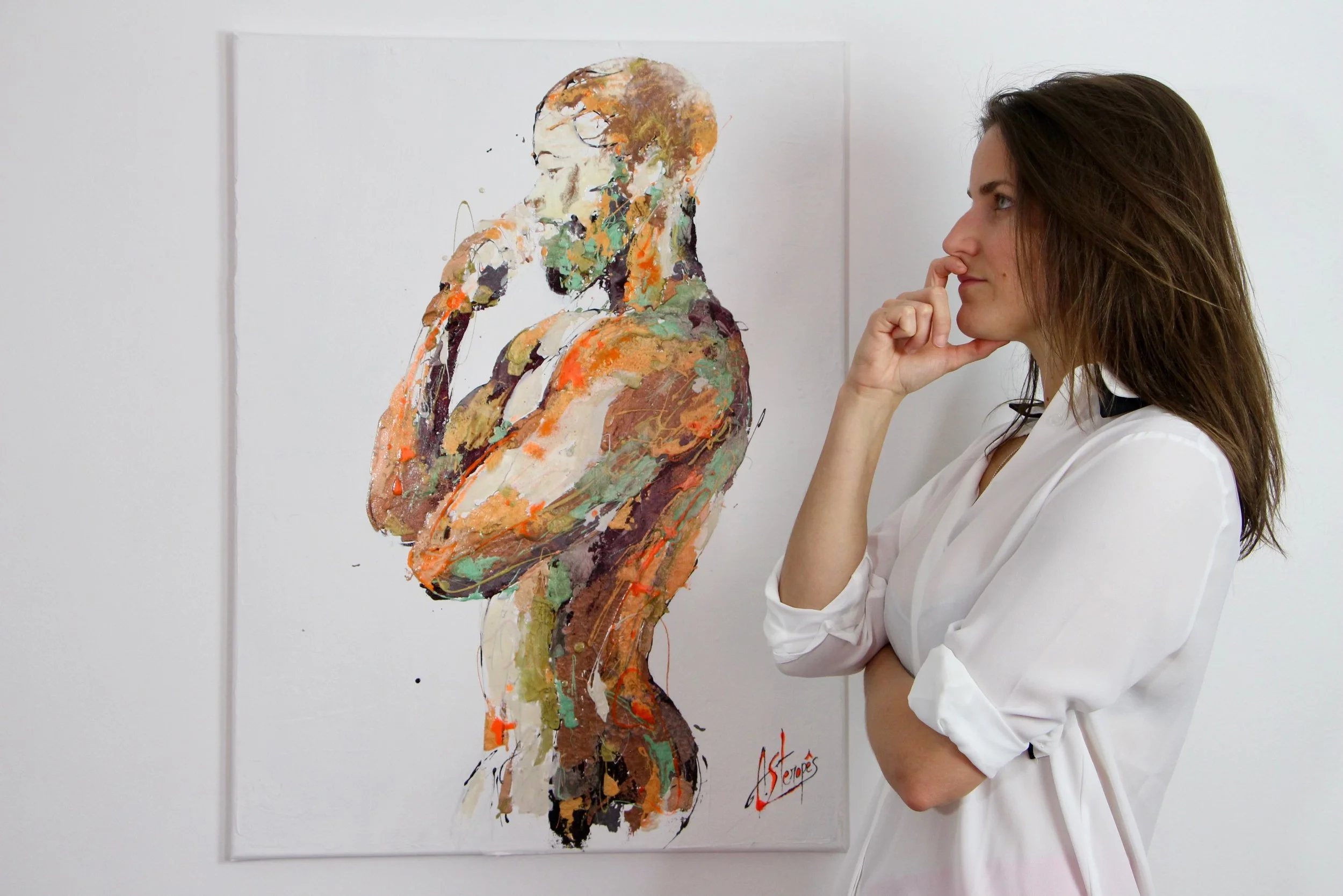 La première des raisons est pour la spontanéité et l’énergie, cela va donner une réelle dynamique à l’œuvre. En laissant des jets et des éclaboussures se déposer sur la toile de manière aléatoire, elle arrive à capturer dans ce mouvement d’instantanéité la joie et la sensualité du sujet. En se libérant des contraintes et du contrôle total, elle peut laisser place aux émotions et de son état d’esprit au moment de la création. Le dripping lui permet également de déposer et de créer sur la toile des motifs et des textures uniques. Cela donne à ses œuvres une dimension imprévisible pour refléter toute la beauté du corps. Par l’effet des couches successives de peinture qui se chevauchent et s’entrelacent, la technique du dripping créent une richesse visuelle et une profondeur qui vont fasciner.