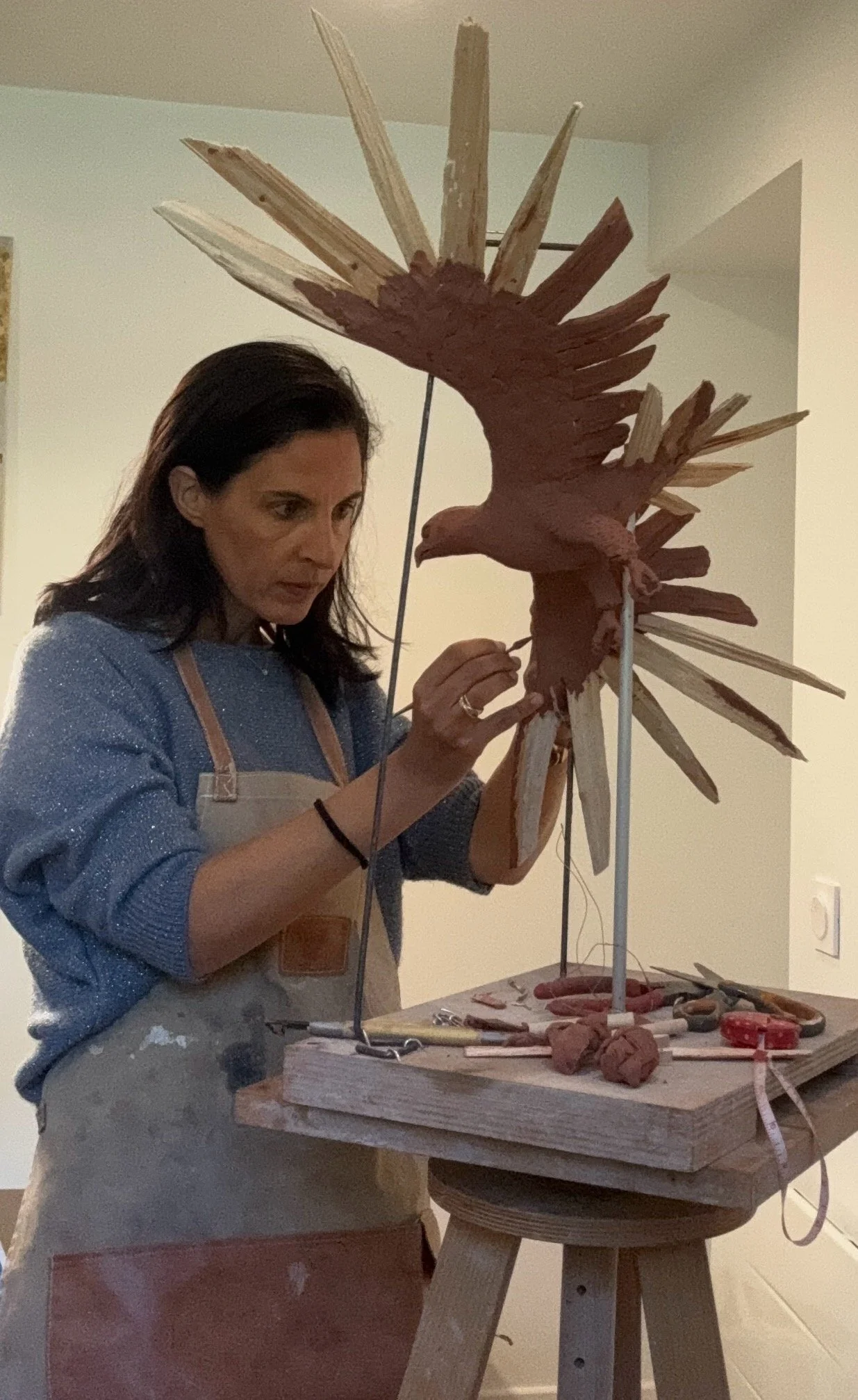 La nature est depuis toujours sa muse : « Depuis l’enfance, la nature m’appelle, elle est au cœur de mon travail », confie-t-elle. Les thèmes de ses sculptures puisent donc dans la faune sauvage mais aussi dans l’imaginaire marin : animaux stylisés, bustes et silhouettes marines se succèdent sous ses doigts, explorant l’élégance des corps, la tension des postures et l’évanescence du mouvement. Son travail est d’une précision extrême, elle joue des textures et des jeux d’ombre et de lumière pour capter un souffle de vie immobile. L’élan vital du règne animal est omniprésent, ainsi que la relation intime entre l’être et son milieu.